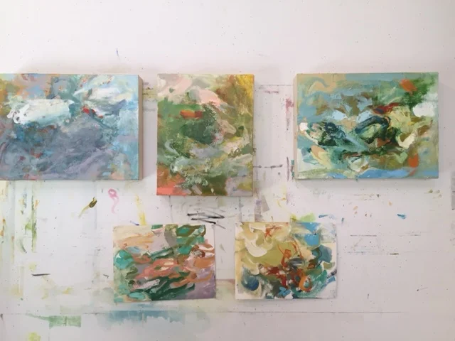Currently, my work is showing subtle changes, tighter spaces and abrupt junctions between marks, color, and new forms are emerging. All aspects of natural forms, real and imagined, are explored. References are the sky and land – a departure from water.