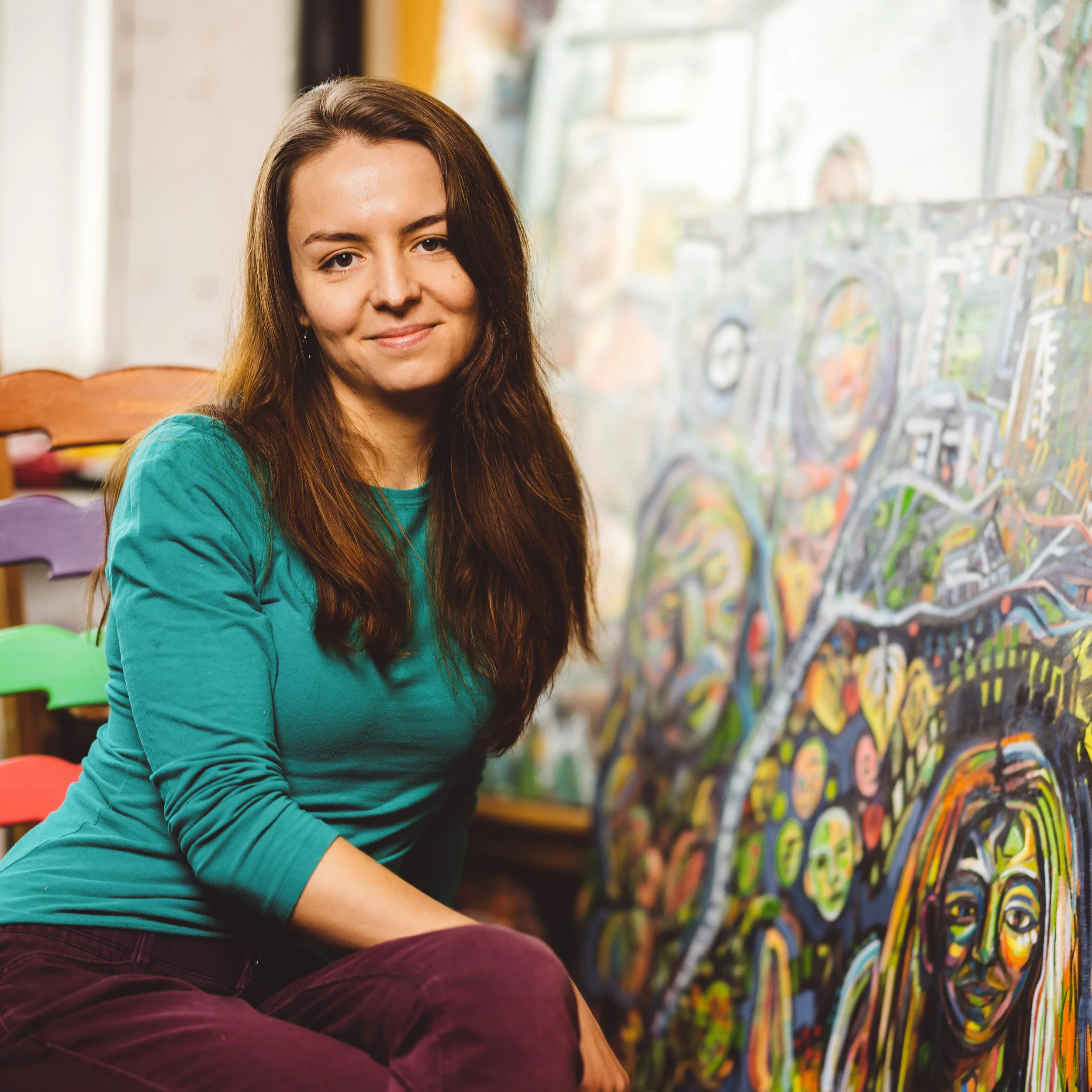 Margarita’s career as an artist began with Artists for Humanity – Boston, where she worked as a painter and collaborated on public art projects. In 2012 she studied Chinese ink painting in Hong Kong through Tufts. In 2013 she received the Dehn Traveling fellowship for a trip to Armenia and Georgia, which resulted in a body of work inspired by the stone structures she photographed while there. In 2014 Margarita graduated from the Tufts and SMFA Combined degree program with degrees in Art and Neurobiology. In 2018 she commenced on a yearlong backpacking trip throughout Europe, Middle East, and Asia, painting commissioned murals along the way. She currently works out of Studio 510 at Western Ave Studios and teaches art at Alma Mater Studio in Lexington and the Hopkinton Center for the Arts.