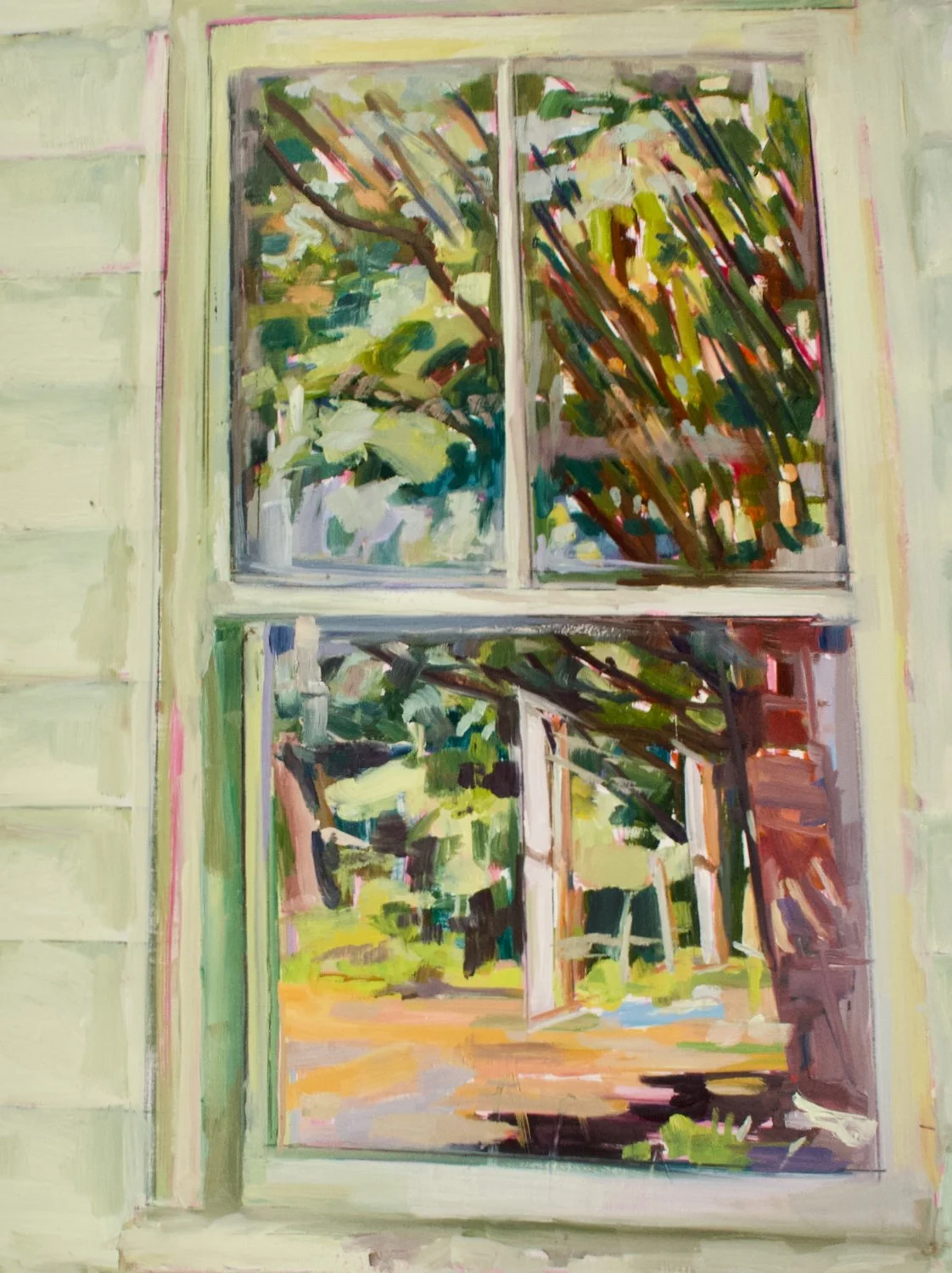 My work has evolved from painting accurately with an academic eye but now the ever our evolving world, (ever so troublesome), my attention has been drawn to what I call: “in between” worlds. When we look into a window and see a reflection but at the same time see objects on the other side... there is a space. The reflection is coming from somewhere else and is not related to what is inside or is it? I wonder about this reflected world whether it is another place to go and find myself in deep exploration of this universe. It s a safe place to go and helps me reconnect with nature. It reminds me to breath, observe and delve into the beauty of everyday things that are around us. From bees to flowers to weather to dirt.